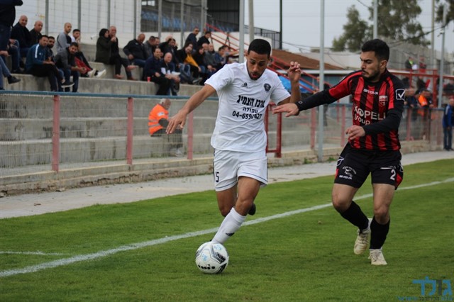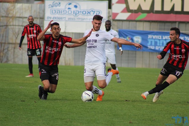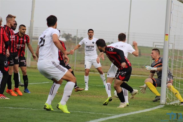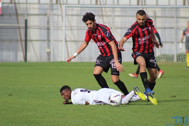 אבי מלכה מקבל כדור, אך לא מצליח לבעוט לשער (צילום: חגאג ראחל)