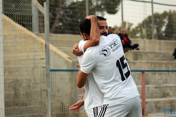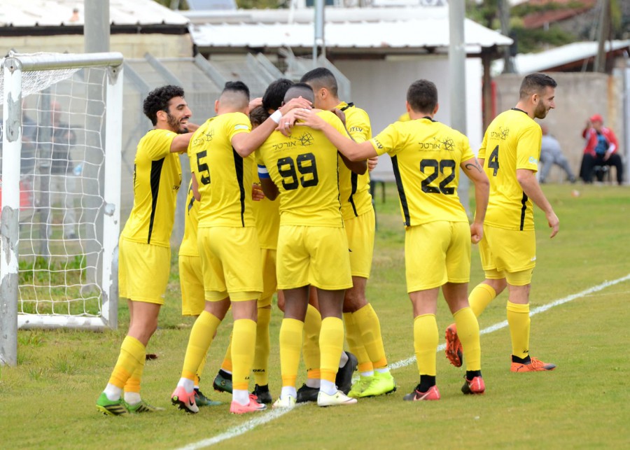 שחקני נורדיה חוגגים ניצחון באזור. צילום: מני בן ארי.