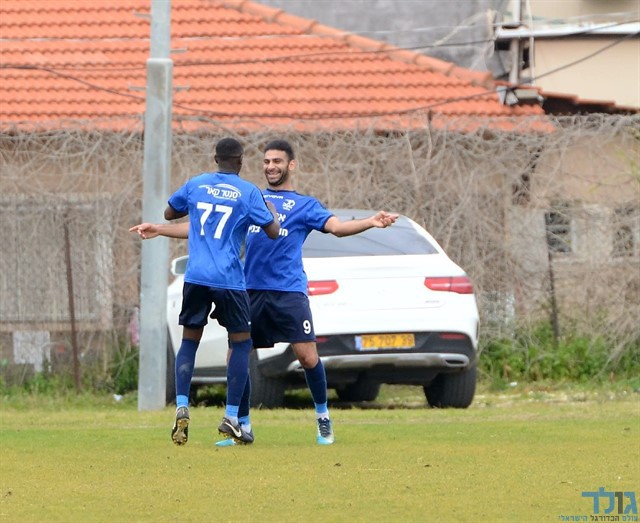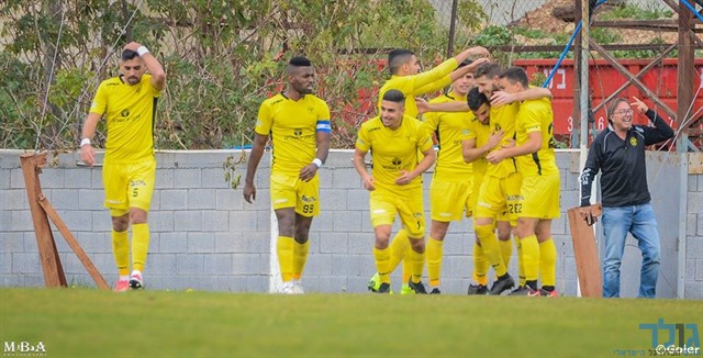 ליאור עדיקה כובש צמד, ושחקני נורדיה חוגגים ניצחון חשוב (צילום: מני בן ארי)