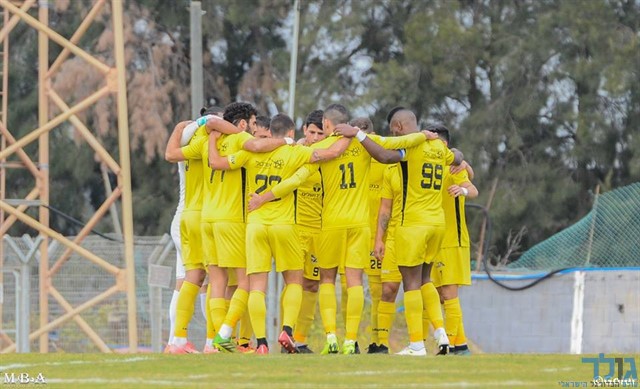 שחקני נורדיה חוגגים את השער (צילום: מני בן ארי)