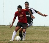 רמי צבי(בשחור)ואבו ג'אפר במבט על הכדור.(צילום:לירן דורף)