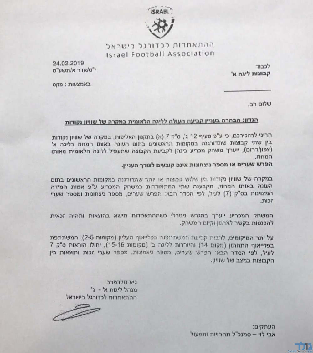 - שאלה מענינת (אוהד 24-02-2019, 23:55)ואם יהיה אותן נקודות ליותר משתי קבוצות