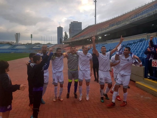 שחקני הכח חוגגים ניצחון יקר מול כפר שלם (אוהד רון)