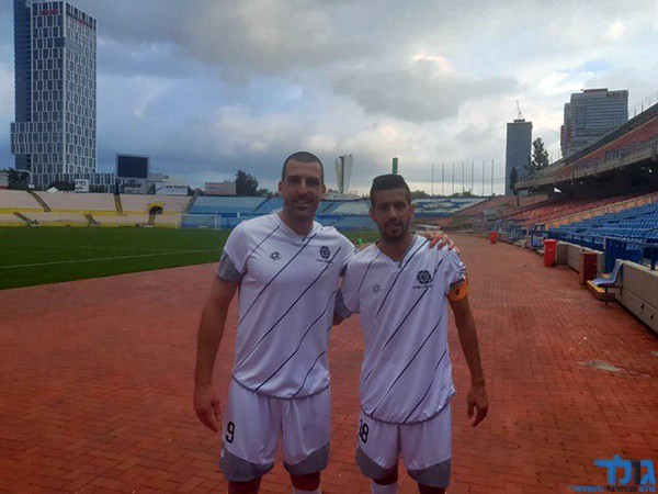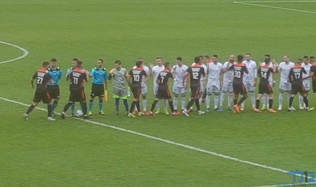 שחקני שתי הקבוצות לפני פתיחת המשחק