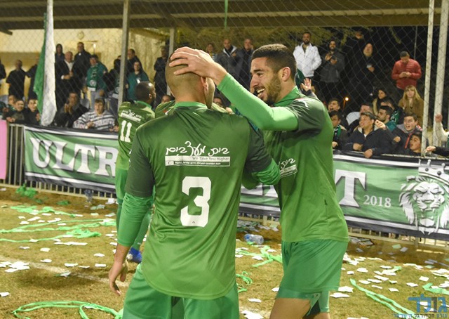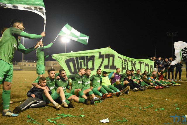 שחקני מכבי ציון שדרות חוגגים בסיום ניצחון חשוב מאוד (צילום: אורי גבאי מדיה מכבי שדרות)