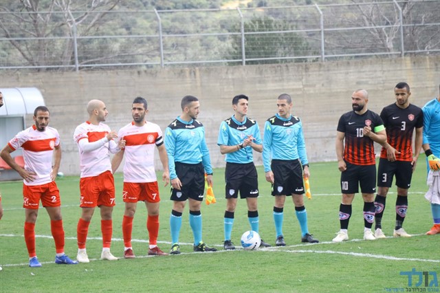 שחקני שתי הקבוצות לפני השריקה (רמזי אבו אלהיג'א)