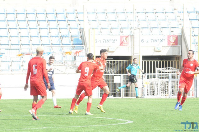 שחקני הרצליה חוגגים את שער היתרון של שלום אדרי (איתן ידגר)