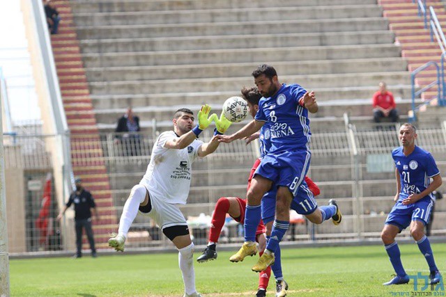 אביאל גבאי כמעט ומשיג את השוויון לאחר כדור חוזר מהבעיטה הנהדרת של אבו ריא (עודד חסין)
