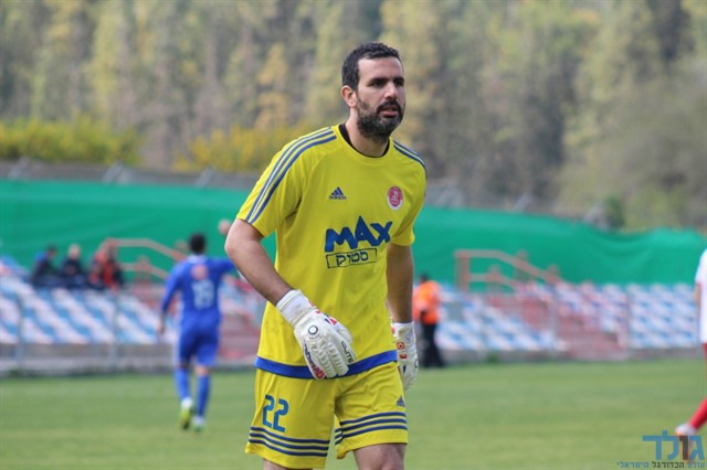 שוער מגדל העמק לוקח כדור ושומר על שער נקי במחצית הראשונה (צילום: חגאג ראחל)