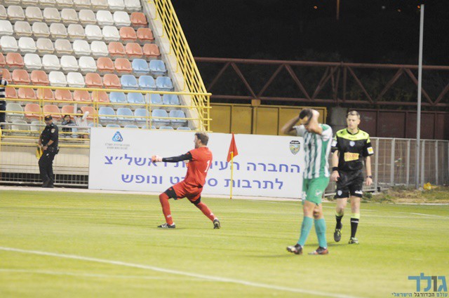 - גיא ליפקה ניגש לבעיטה הראשונה וגל פלמנבאום קולט את הכדור בצורה נהדרת!
