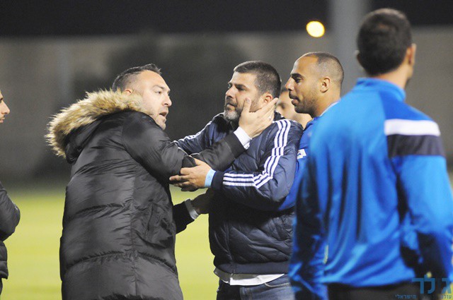 הסדרן משה עגייב מימין, חבל ששולחים סדרנים שמנסים לחפש פרובוקציות על חשבון הקבוצות הקטנות. לא מכובד לו ולהתאחדות. צילום: איתן ידגר.