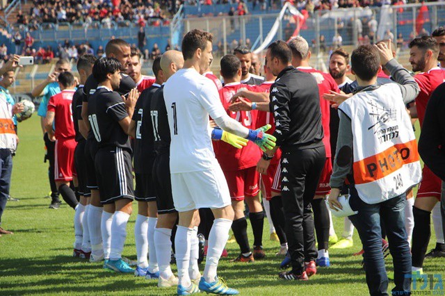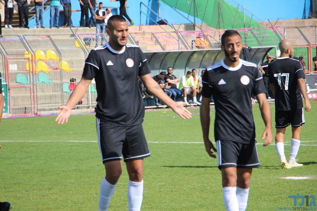 שחקני באקה מכבדים ומברכים את שחקני אום אל פאחם על עליית הליגה (חגאג רחאל)