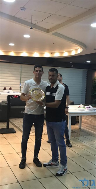 סהר דבח תגלית העונה, עם המאמן אלעד בראון (קרדיט: דוברות עיר הפועלים)