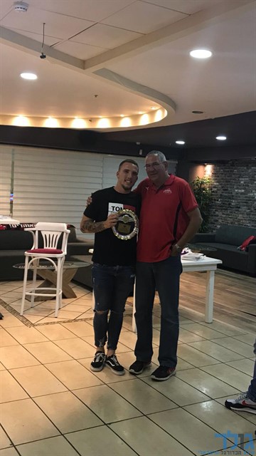 מישל חליל השחקן המסור, עם מיקי קופל הנהל הספורטיבי (קרדיט: דוברות עיר הפועלים)