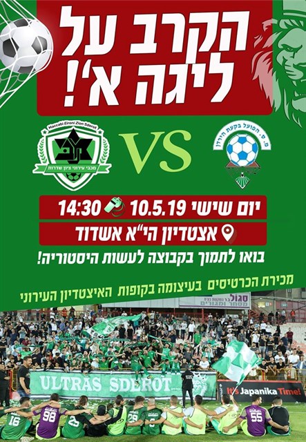 מכבי שדרות והפועל בקעת הירדן תיפגשנה ביום שישי באצטדיון הי"א באשדוד, למשחק שבסופו יקבע מי תשחק בעונה הבאה בליגה א' דרום