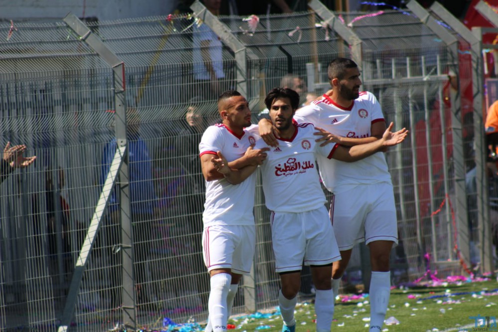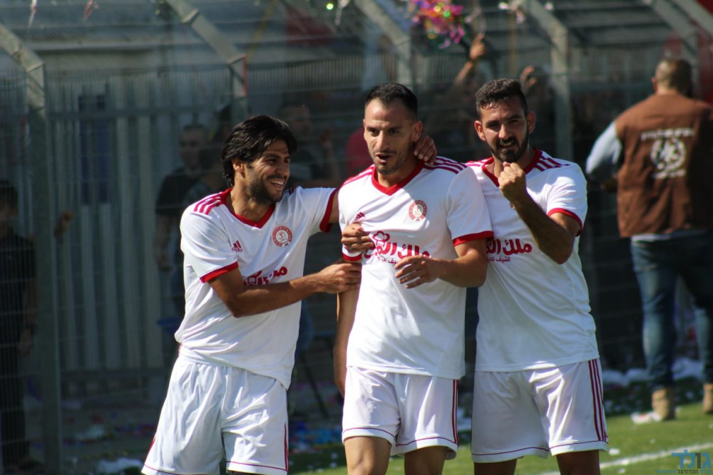 קדוסי חוגג עם חבריו את השערים. צילום: חגאג רחאל