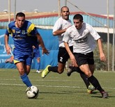 עופר סהר(בכחול) כובש השער השני לחולון מול ניר אבו מנחלת.(צילום:לירן דורף)