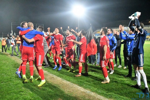 סארי חאג' יחיא, ושחקני אום אל פאחם חוגגים עלייה מרגשת בעונה הקודמת (צילום: גסאן אבו פנה)