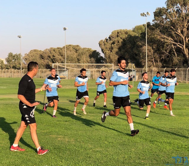 שחקני מ.ס דימונה באימון הפתיחה, יחד עם השחקנים הנבחנים (צילום: דן בונבידה)