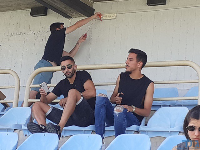 תום מדהלה ביציע במשחקה של מרמורק מול מכבי הרצליה