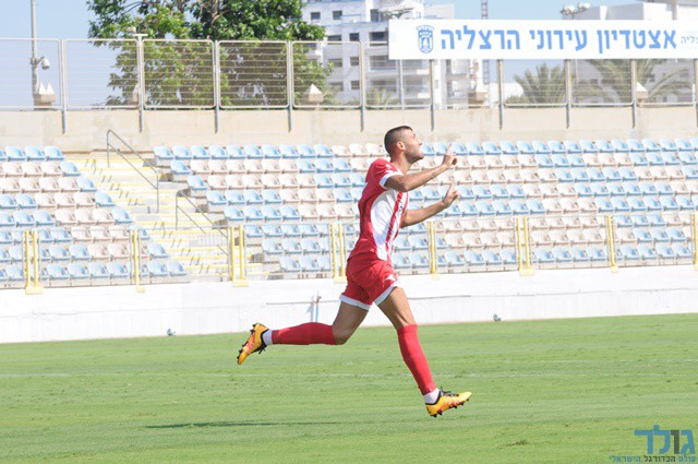 עידו אקסברד חוגג צמד בדרך לניצחון מול מכבי הרצליה (איתן ידגר)
