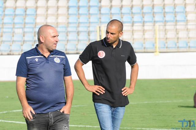 מומו ניסטל, מאמנה של מכבי הרצליה וניב סידי מאמנה של הפועל מרמורק לאחר המשחק (איתן ידגר)