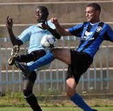 אבי מוז'יה(בתכלת)במאבק עם יוני אליאב ממבשרת.(צילום:ניר דייני)