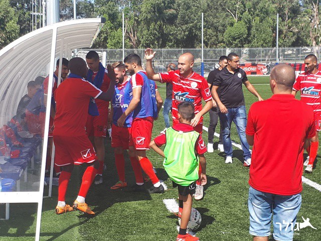 אבירן ברוכיאן חוגג עם ספסלה של אדומים אשדוד (מדיה אדומים אשדוד)