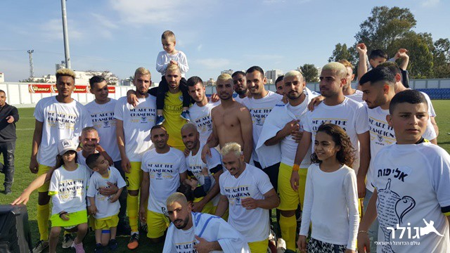 שחקני שדרות חוגגים. יחגגו גם השבוע? (צילום: גולן סבג באדיבות עמוד הפייסבוק של מכבי שדרות)