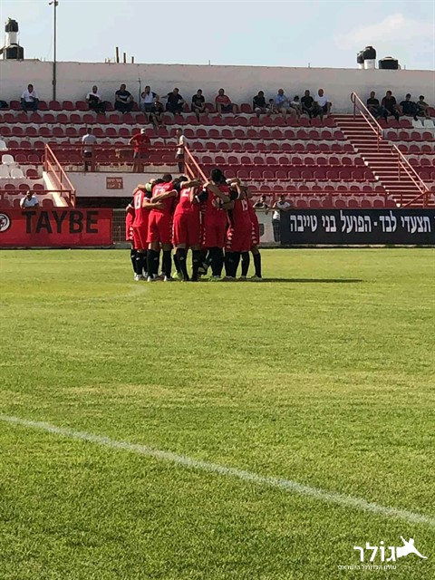 שחקני בני טייבה מרוכזים בפתיחת המשחק (פייסבוק הפועל טייבה)