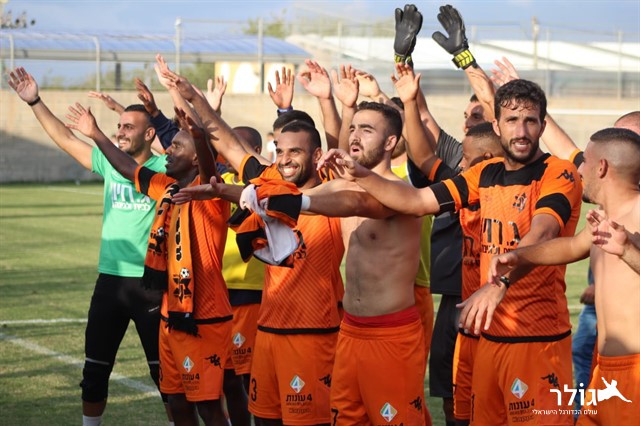 שחקני מלאכי חוגגים בסיום המשחק (צילום: חגאג ראחל)