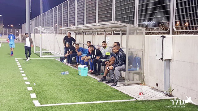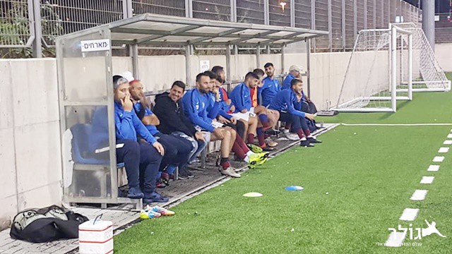 צוות השיפוט וספסלי שתי הקבוצות לפני שריקת הפתיחה (אלי שמואלי)