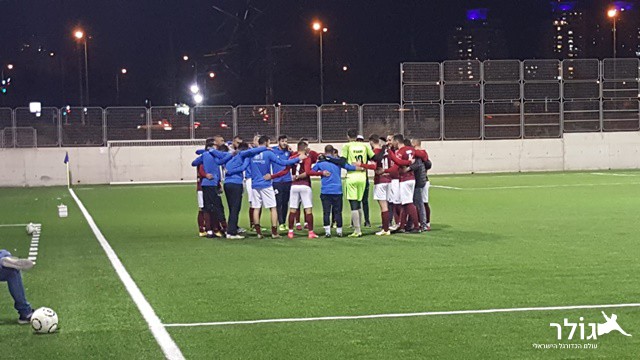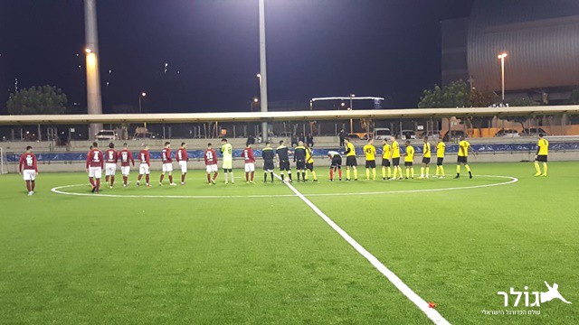 שחקני שתי הקבוצות לפני פתיחת המשחק (אלי שמואלי)