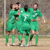 לירן אלמוג(בירוק)כובש את הראשון לזכות עמישב.(צילום:ניר דייני)