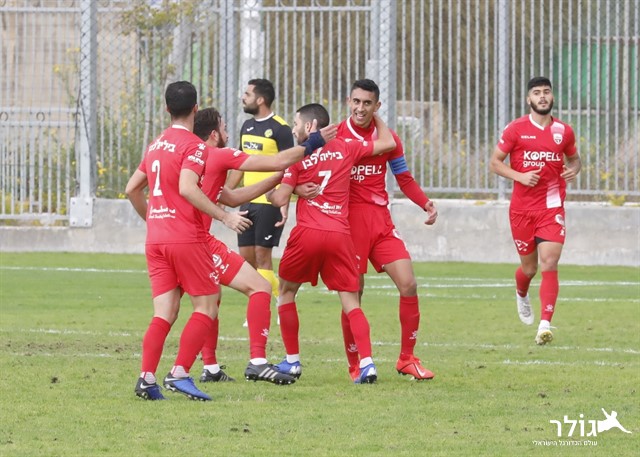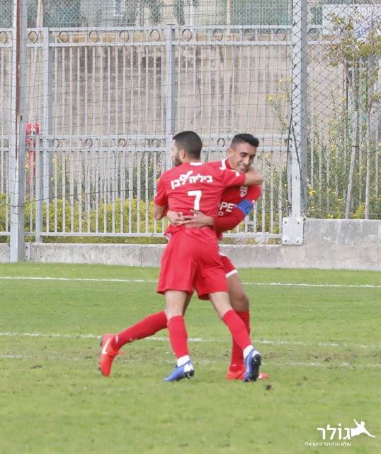 אוסמה שעאבן מעלה את רובי ליתרון ורץ לחגוג עם חבריו (דודו ספיר)