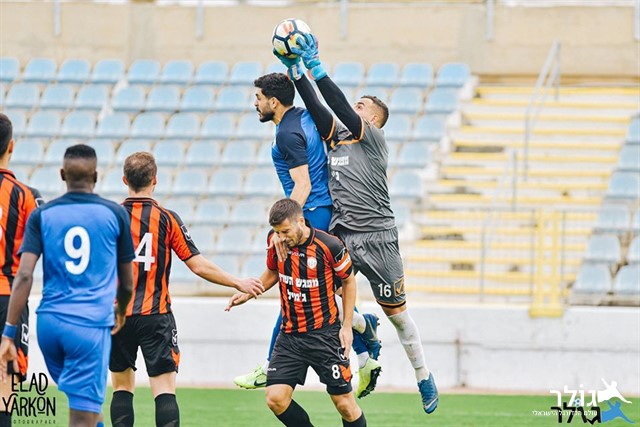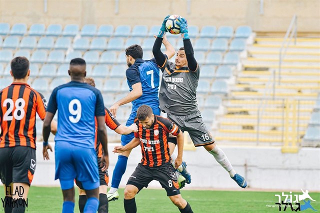שוער הפועל הרצליה הציג יכולת טובה במשחק (צילום: אלעד ירקון)