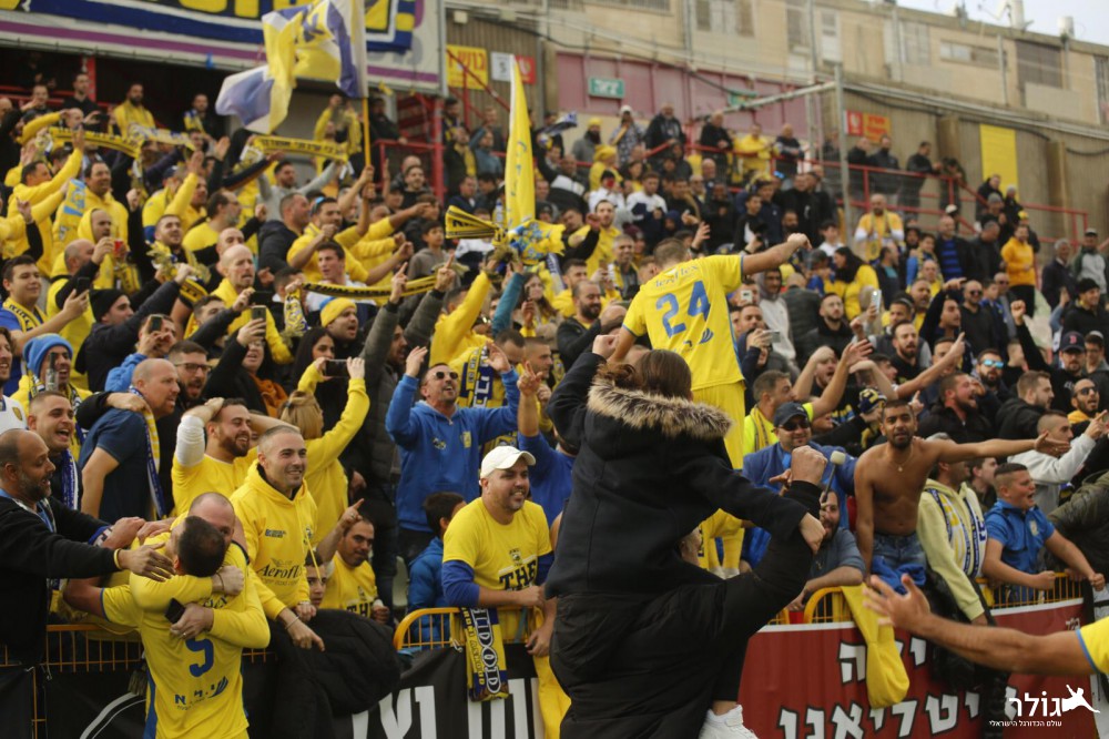 שחקני עירוני אשדוד חוגגים ניצחון יקר בדרבי (מוטי קדוש)