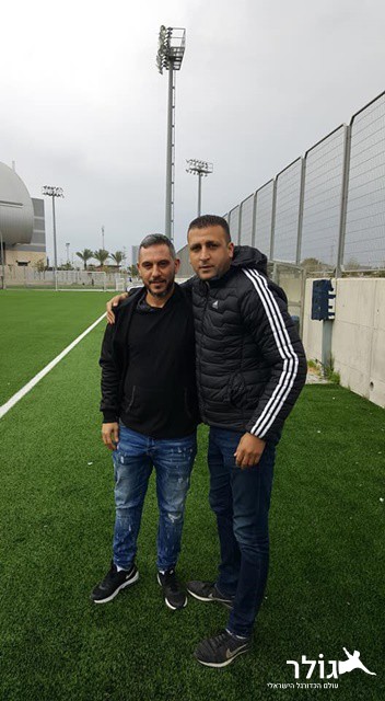 אחוות מאמנים: שוקי סדיס ומוחמד עוודי לפני המשחק (אלי שמואלי)