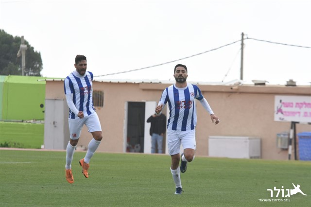 קפטן מ.ס דימונה משה אסולין כובש את שערו ה-15 העונה ורץ לחגוג (צילום: אורי גבאי)
