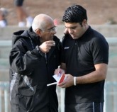 חנן עדני בשיחה צפופה עם צחי טיאר בהופעת הבכורה על הקווים.(צילום:ניר דייני)