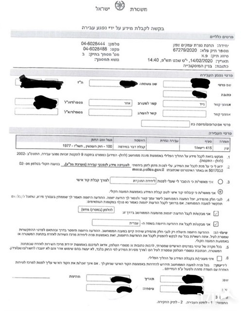 התלונה שהוגשה למשטרה...