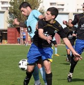 יוגב לרמן(בשחור)ועידן ששון מכפר יונה מחפשים כדור.(צילום:לירן דורף)