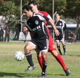 תומר שפט מנסה עקב,ציון סיני מחפש כדור.(צילום:לירן דורף)