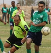 אודי שנורמן(בצהוב)מנסה לברוח מבאסם אלהוזייל.(צילום:אנס אבודעבס)