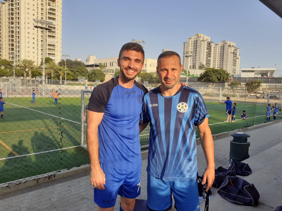 אודי כבודי מאמן קרית אונו יחד עם שרון לוי החלוץ