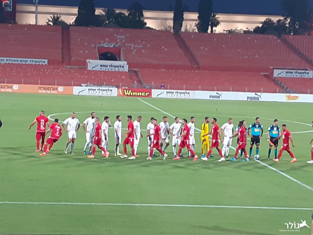 שחקני שתי הקבוצות לפני פתיחת המשחק
