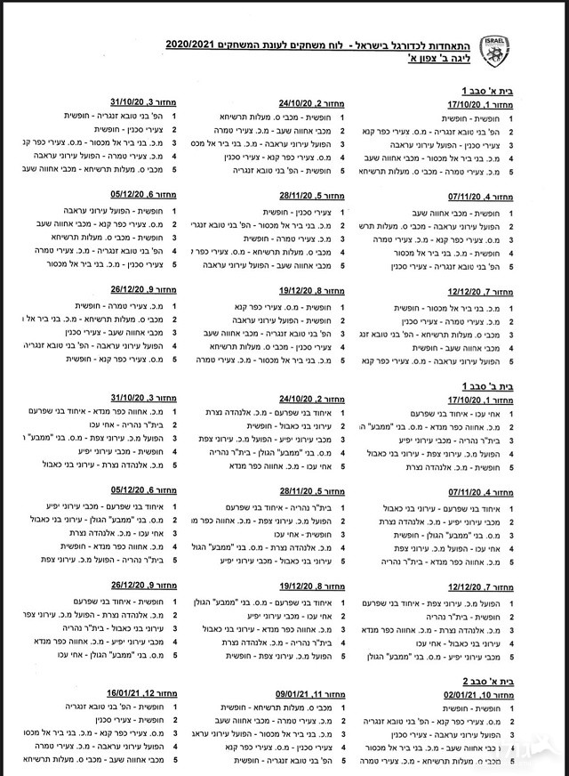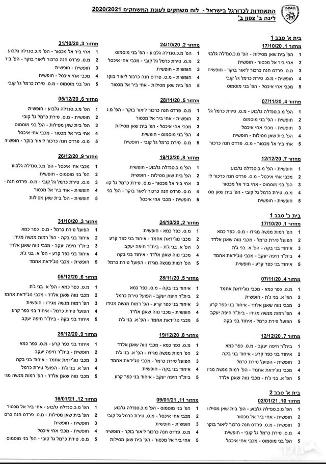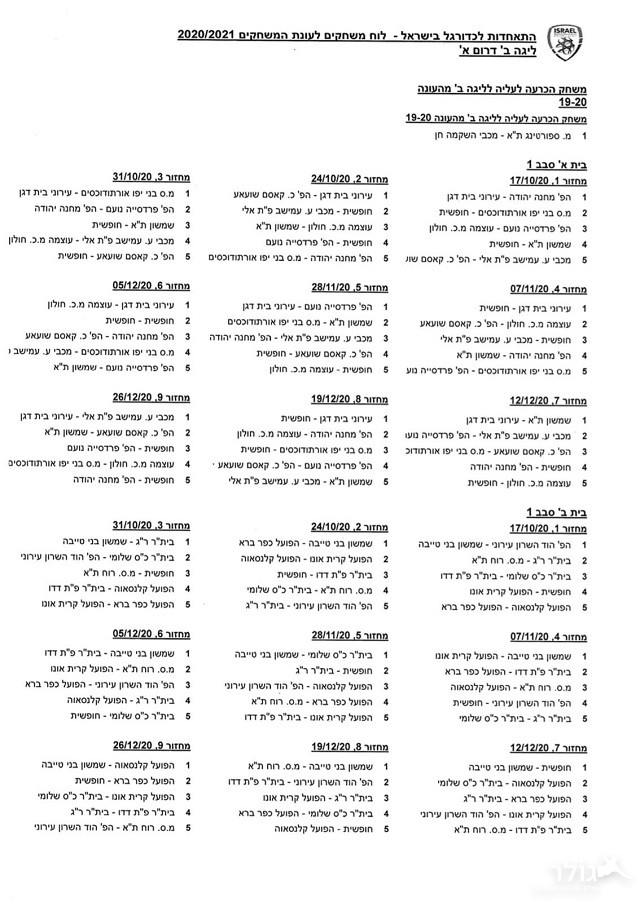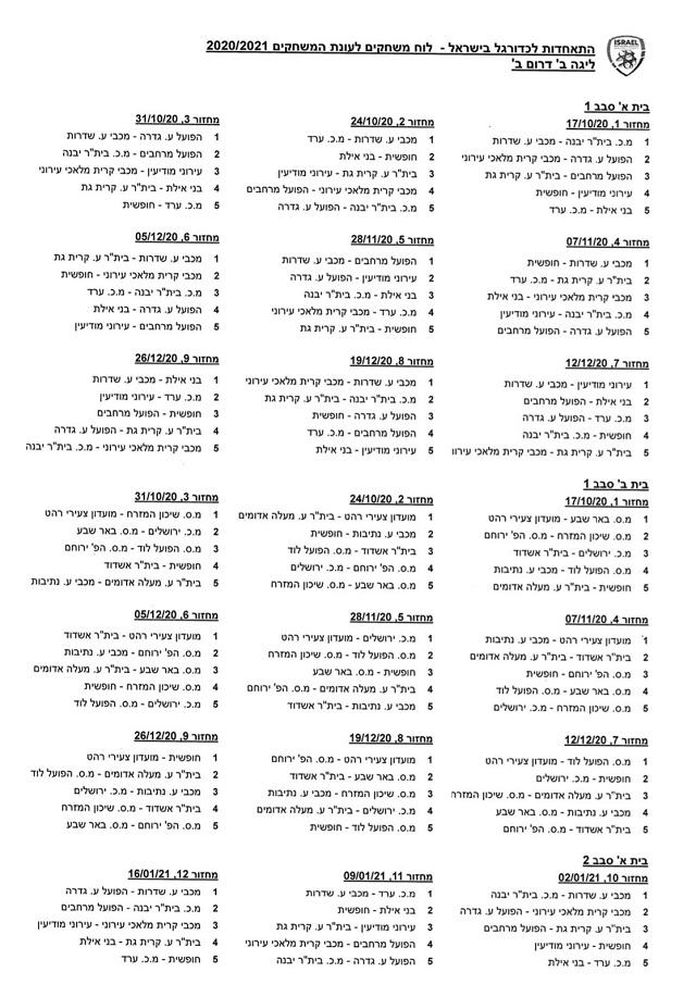 לוח משחקי ליגה ב' צפון ודרום לעונת 20/21