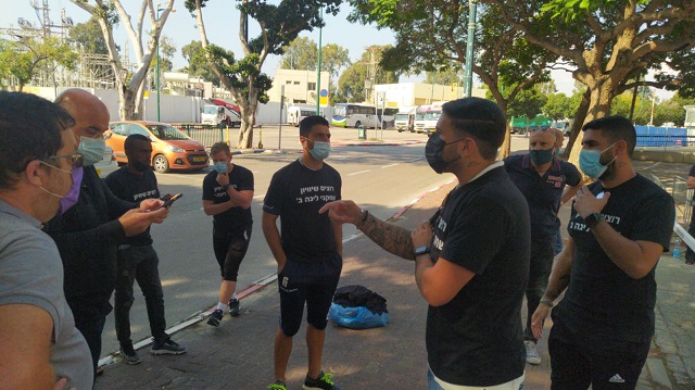 שחקני ומאמני ליגה ב' מפגינים מול ההתאחדות לכדורגל