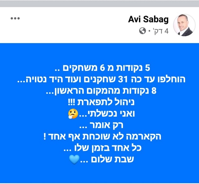 כיום, אבי סבג לא מאמן בוגרים בליגה לאומית והיום, יום שישי, לאחר שאום אל פאחם הפסידה לאיכסל הוא העלה פוסט ביקורתי ובו נאמר על ההתנהלות של המועדון לאור התוצאות המאכזבות, ואנחנו שואלים, האם הפוסט הוא ביקורת או נובע מתסכול של המאמן שנכשל בבניית הקבוצה בתחילת העונה?