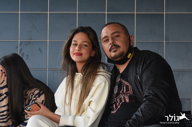 רונן כנפו ובתו מרוצים בסיום המשחק (צילום: מני בן ארי)